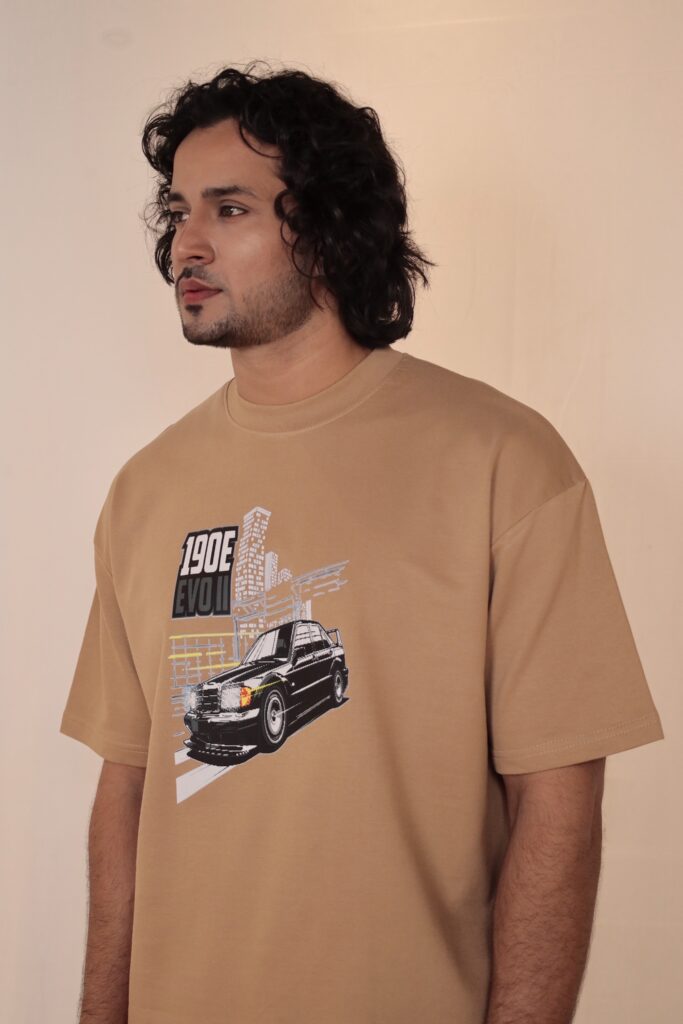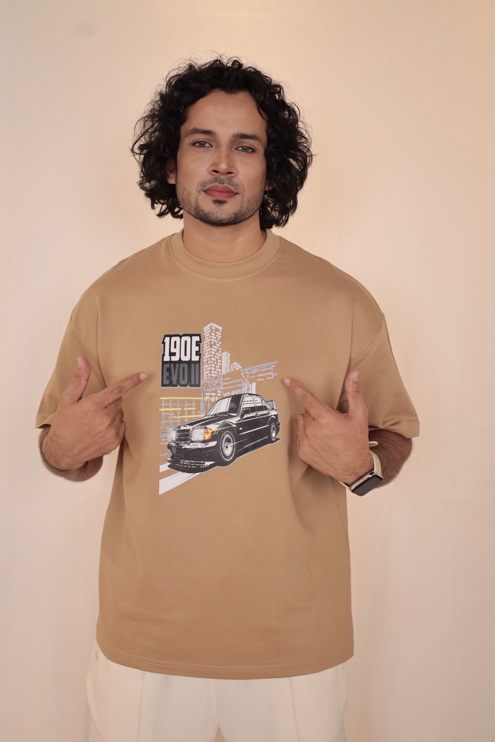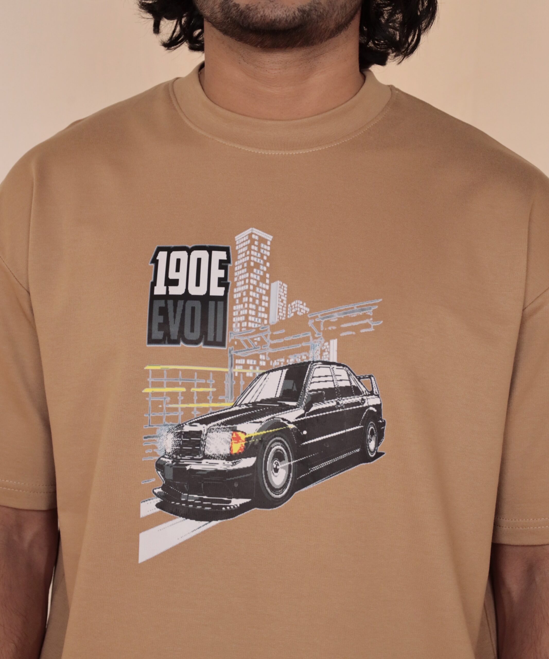 Inspired by classic performance culture and modern city life, the 190E EVO II Oversized Tee blends automotive heritage with contemporary luxury street style. The detailed car illustration and architectural backdrop create a bold visual narrative—powerful, nostalgic, and unmistakably premium. This is not just a t-shirt, it’s a reflection of speed, structure, and street dominance—designed
