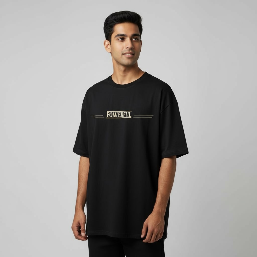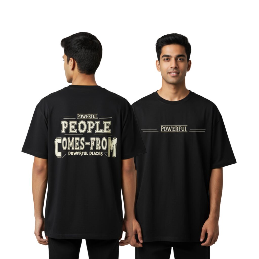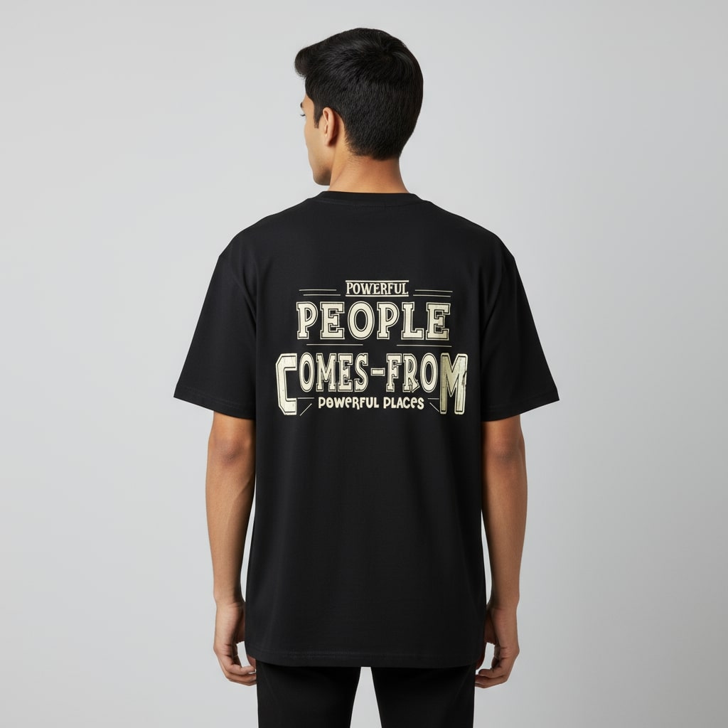 Inspire your look with the Powerful People oversized t-shirt, crafted from premium French terry cotton for supreme comfort and longevity. This men’s round neck tee showcases a striking, motivational quote in bold off-white lettering, centered on a classic black backdrop for maximum contrast. Oversized fit delivers modern style, making it ideal for those who want to wear confidence and positivity on their sleeve.