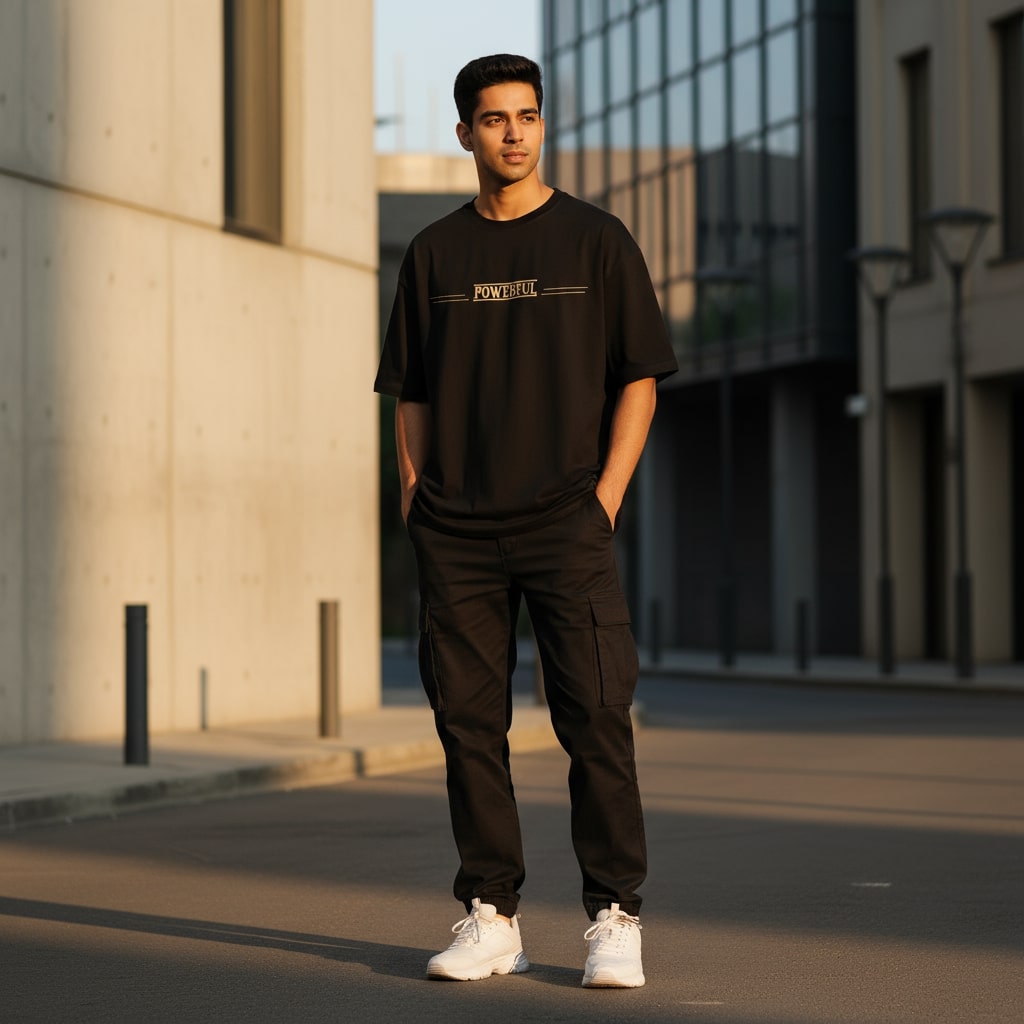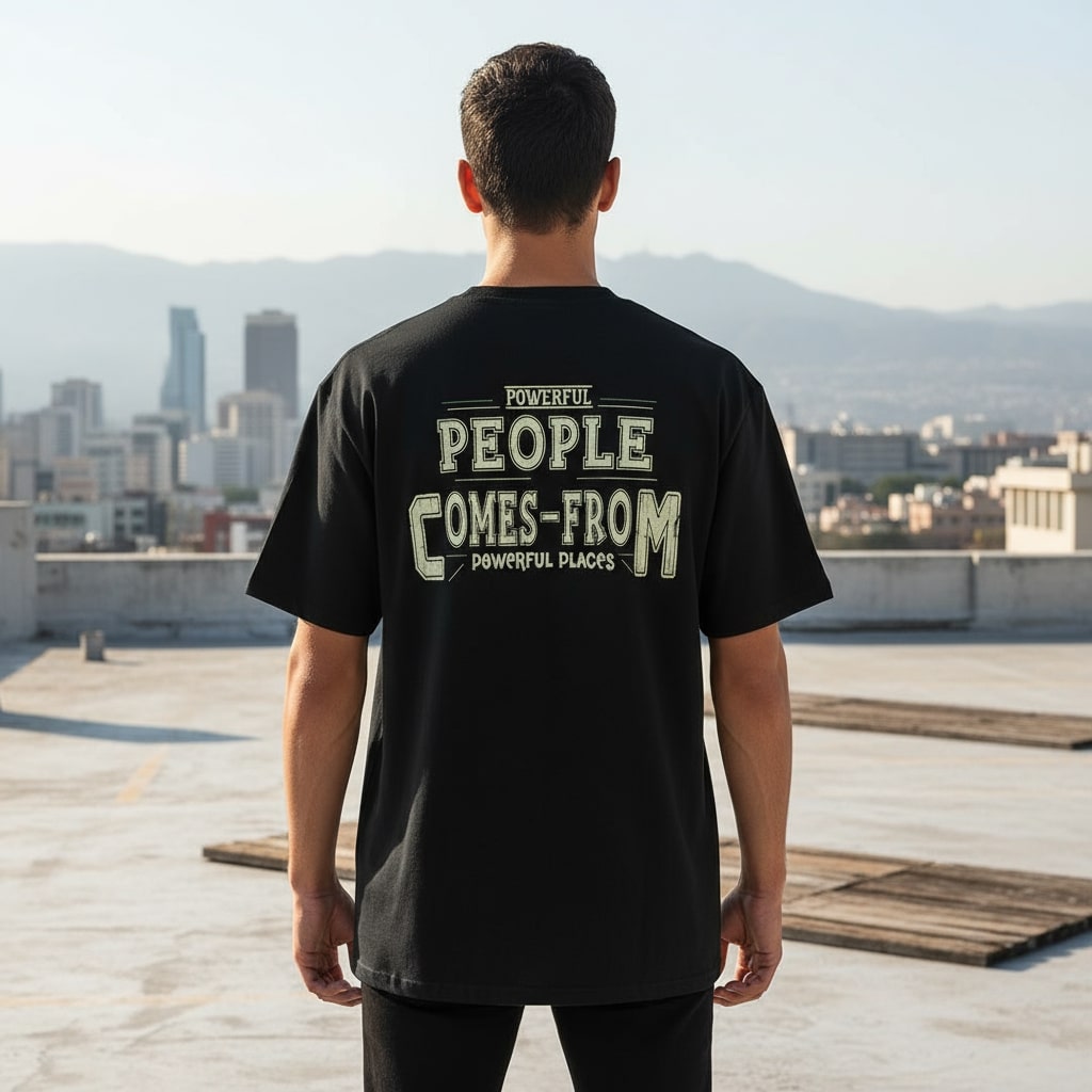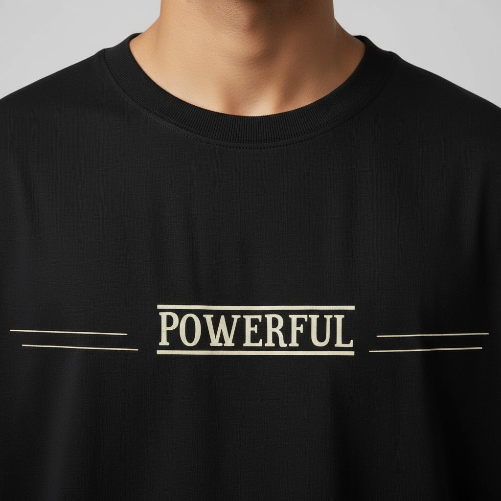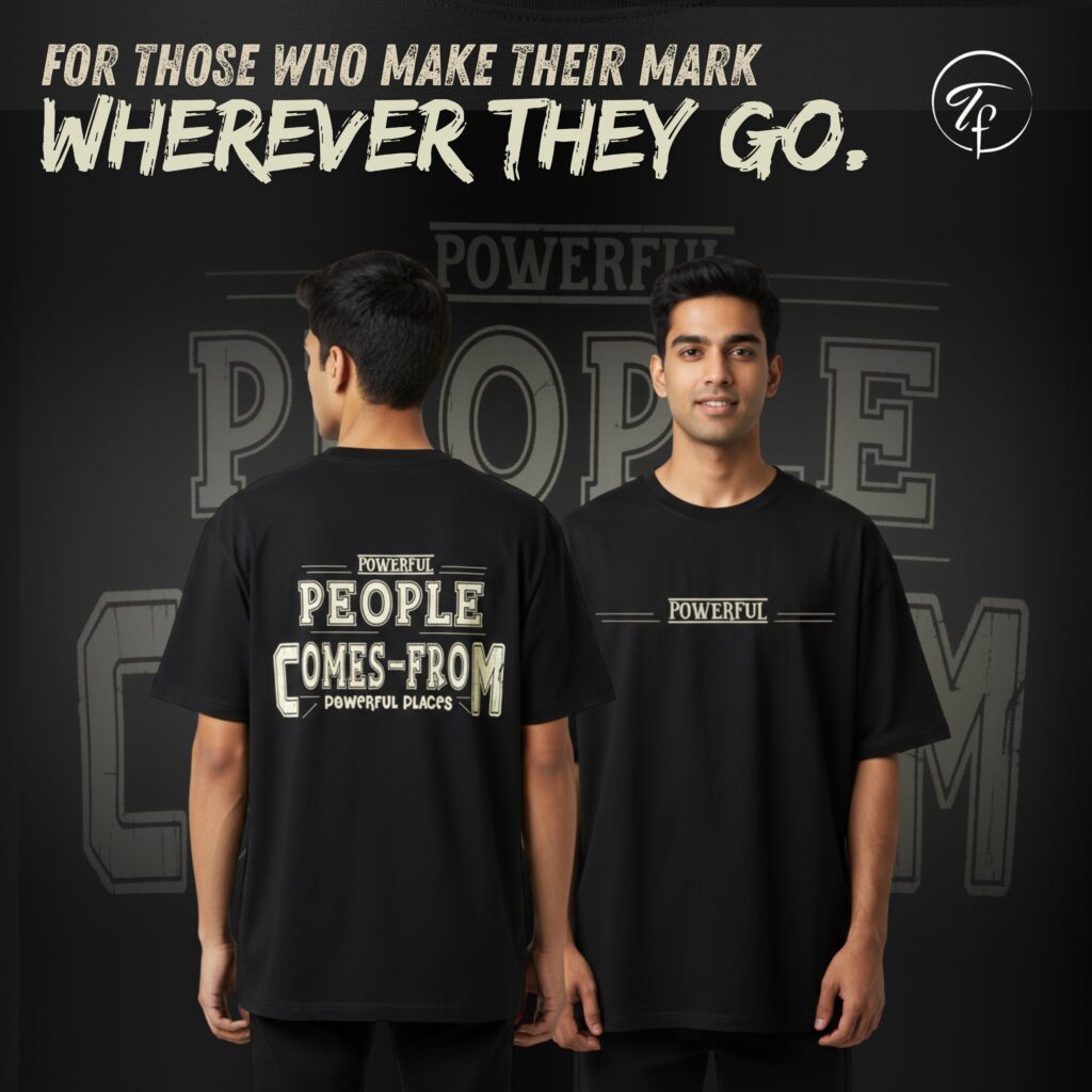 Inspire your look with the Powerful People oversized t-shirt, crafted from premium French terry cotton for supreme comfort and longevity. This men’s round neck tee showcases a striking, motivational quote in bold off-white lettering, centered on a classic black backdrop for maximum contrast. Oversized fit delivers modern style, making it ideal for those who want to wear confidence and positivity on their sleeve.